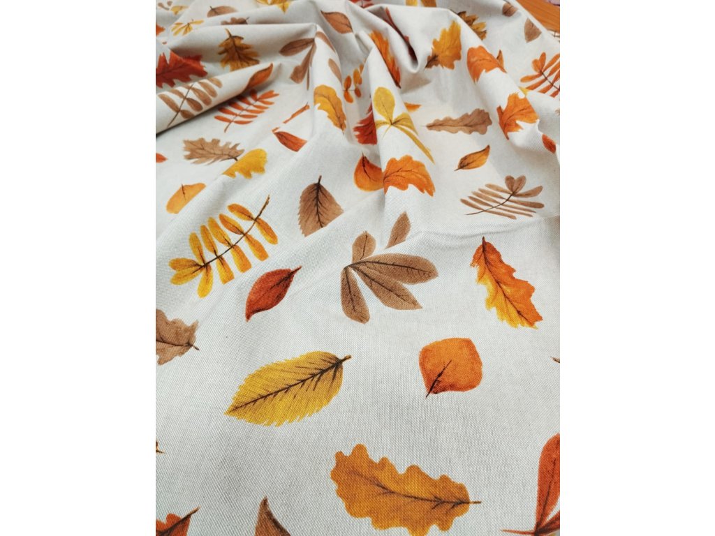 Kvalitní dekorační látka s podzimním motivem vnese do vašeho domova hřejivou atmosféru. Příjemná na dotek, snadná údržba. Vhodná na závěsy, ubrusy, různé dekorace a kreativní šití.