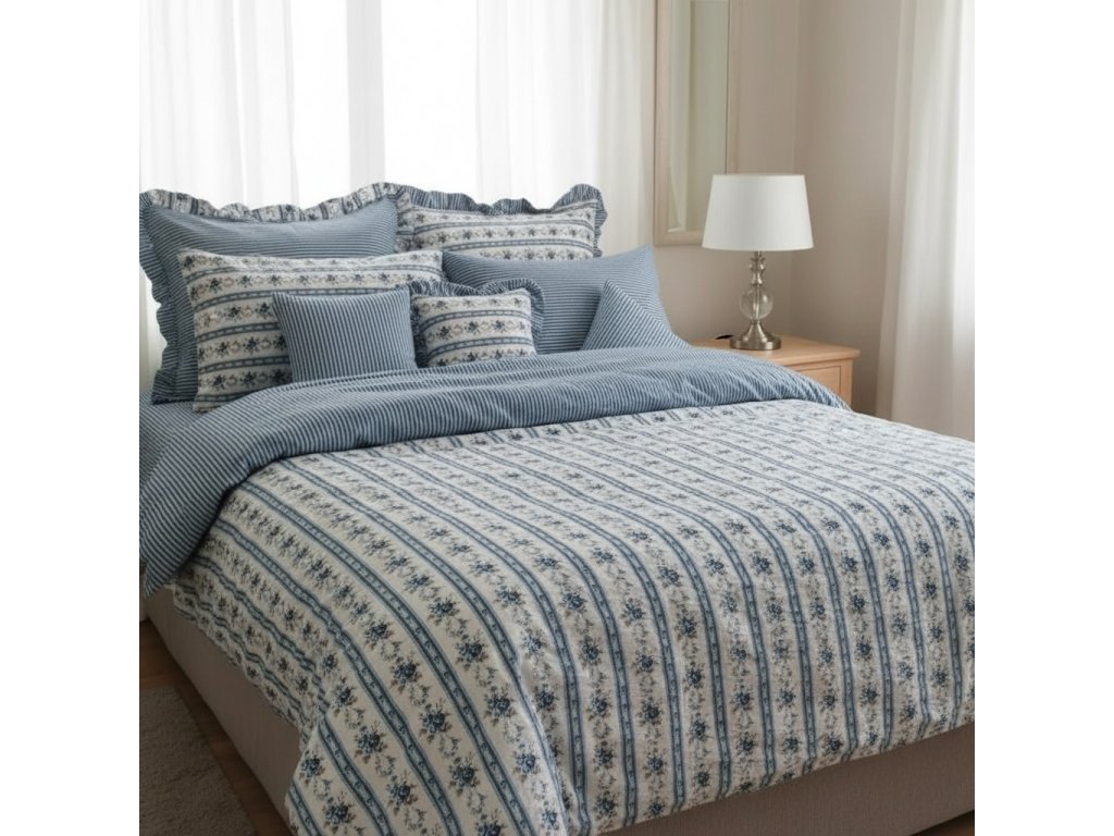 Krepové povlečení s kanýrem staročeské modré