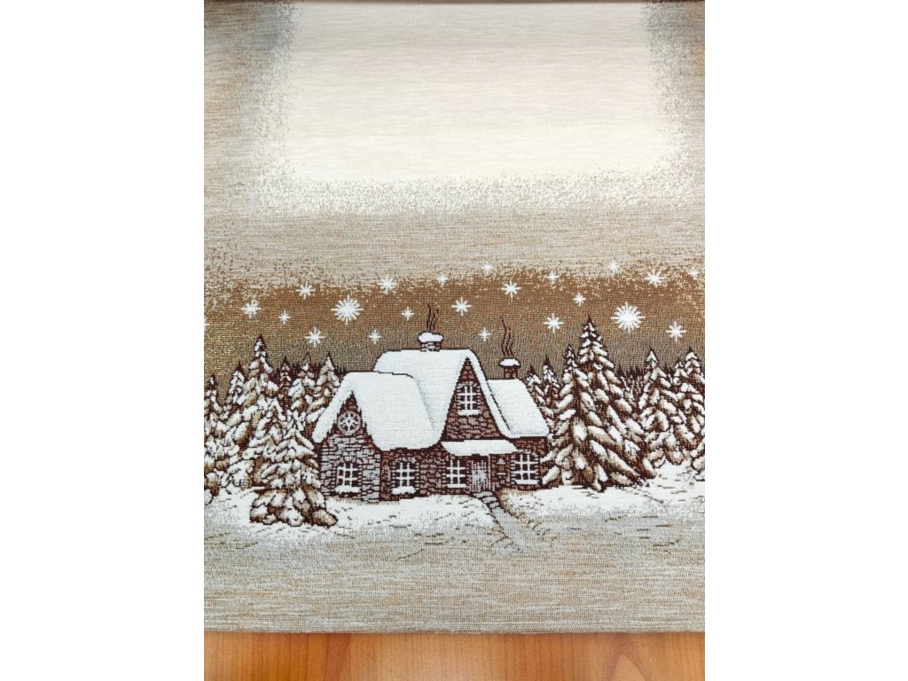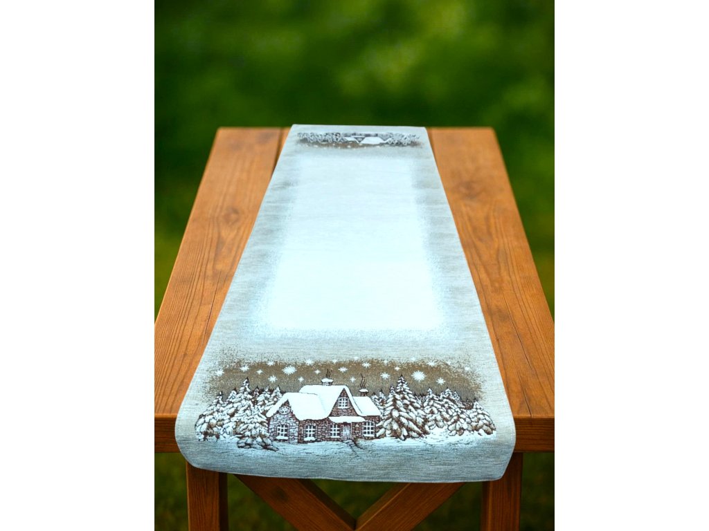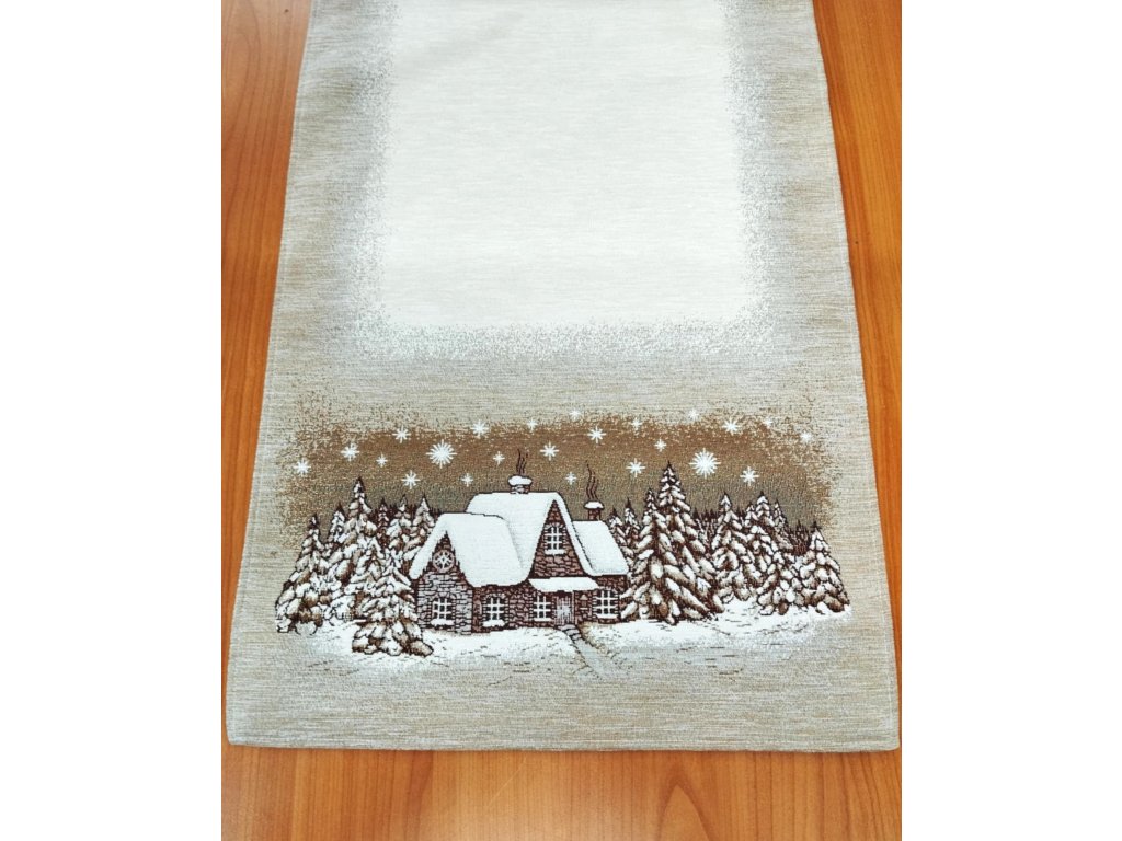 Ubrus běhoun na stůl Chaloupka hnědá